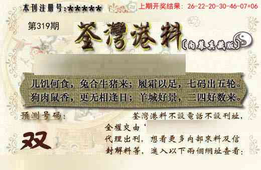 319期:【搭档澳彩★单双三肖★实力打造】√