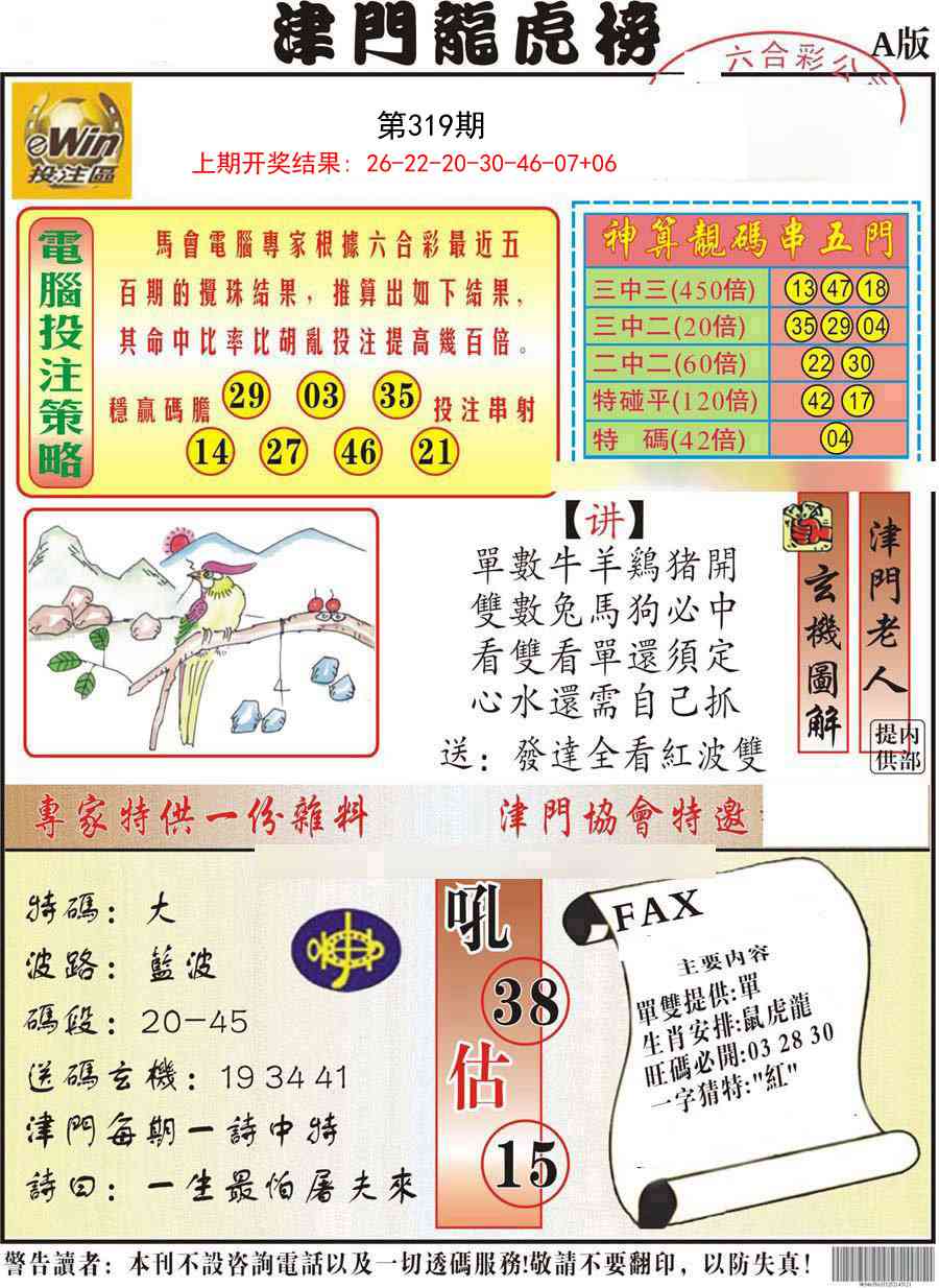 319期:【金牌内幕★⒙码中特★造福彩民】√
