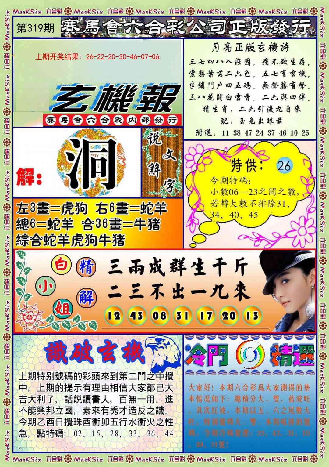 319期:【彩经公式★六肖⑥码★独家提供】√